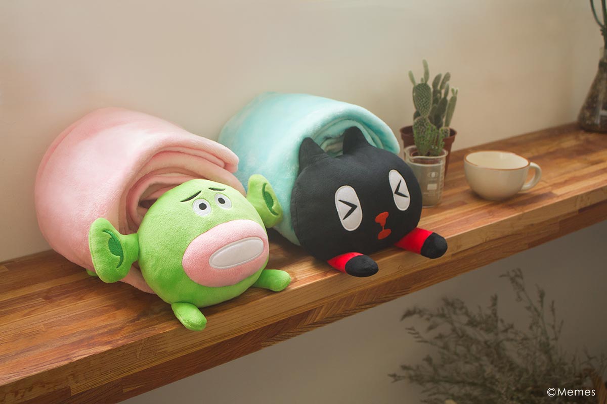 生動的kuroro和小綠,彷彿跟自己共蓋一張棉被。